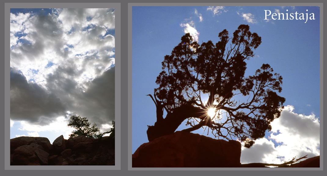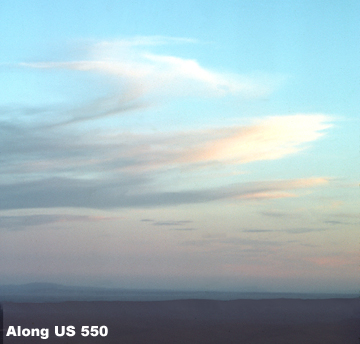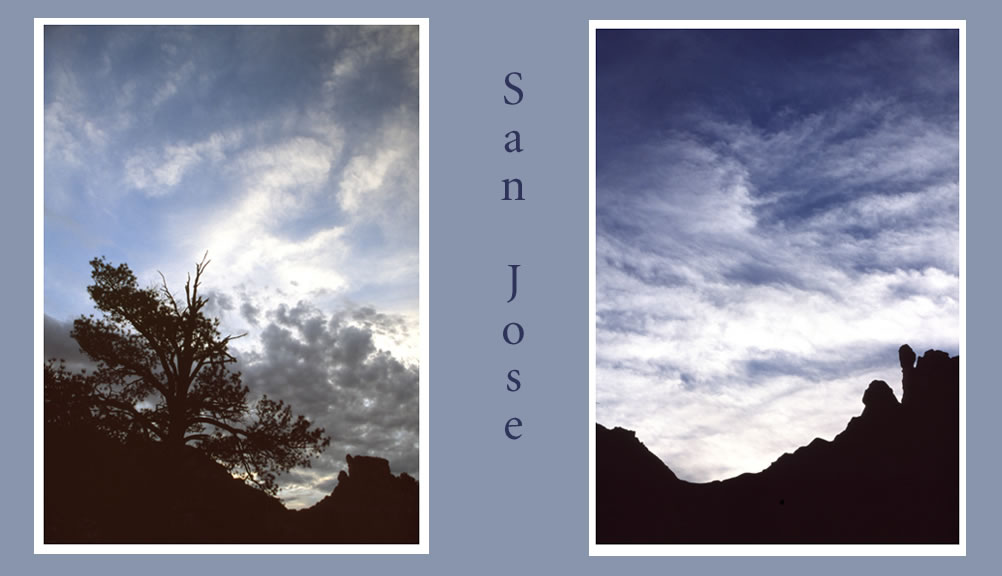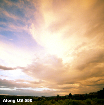 The first thing that always grabs my attention after being out of state for awhile is that amazing New Mexico sky: crystal clear; a luminous, deep blue; and constantly changing with the time of day and season. The ongoing drama includes sunsets and dawns beyond description, arching rainbows, and finely drawn clouds of every shape, texture, and color imaginable. High icy cirrus tentacles form prismatic displays against brilliant sun; cumulus armadas sail through the cerulean vastness trailing blue-gray shadows across the desert floor below; summer monsoon thunderheads billow 50,000 feet into the stratosphere giving true dimension to the vaulted skyscapes.