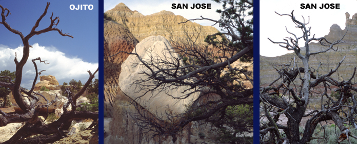 Pure white cumulus clouds billowing high into the stratosphere and stunted, character laden old desert junipers or even their downed skeletons increase the compositional possibilities.